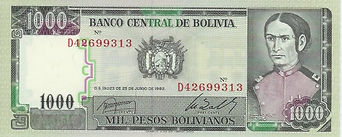 Le 01.01.1987, le BOLIVIANO a remplacé le peso au taux de 1 boliviano pour 1 000 000 de pesos boliviens.